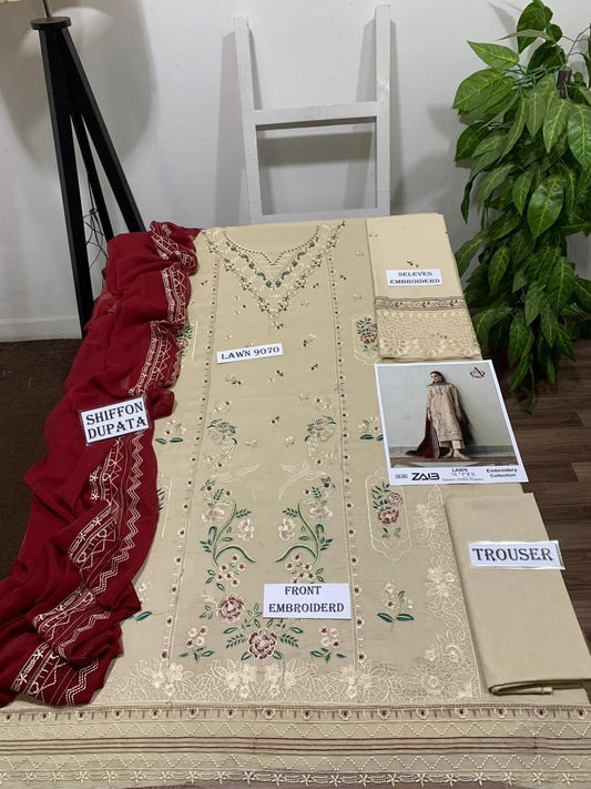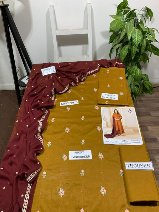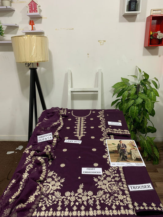 Emb 3PC Lawn Summer Dress With Chiffon EMB Dupatta -WA105