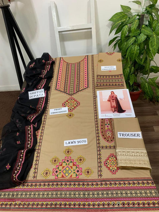Emb 3PC Lawn Summer Dress With Chiffon EMB Dupatta -WA103