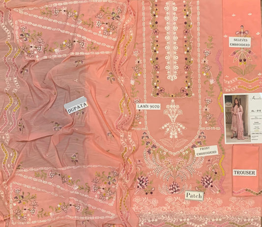 Emb 3PC Lawn Summer Dress With Chiffon EMB Dupatta -AL816
