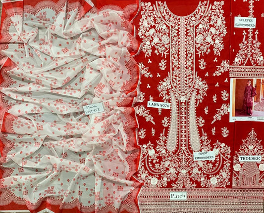 Emb 3PC Lawn Summer Dress WITH SOFT SILK PRINTED DUPATTA -DE526