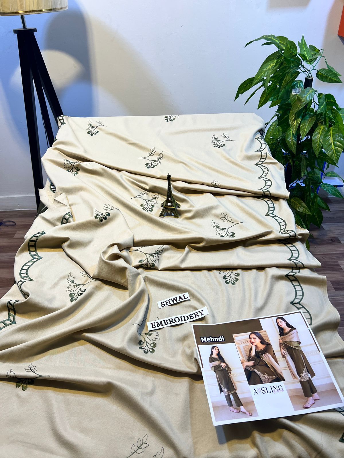 EMB 3PC Dhanak Unstitched Winter Dress With EMB Shawl-KD111