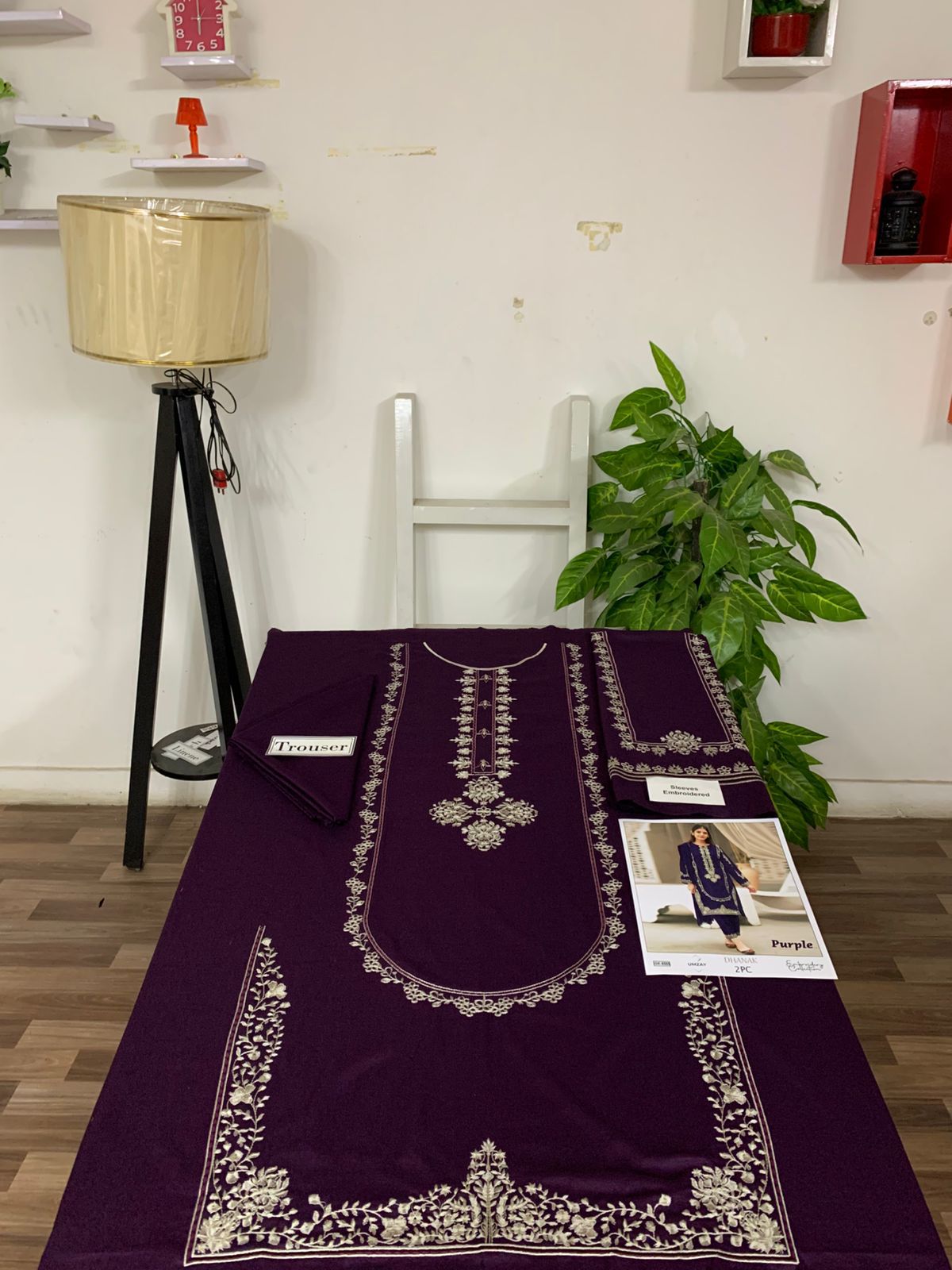 Embroidered 2Pc Dhanak Unstitched Winter Dress With EMB Patches P-55