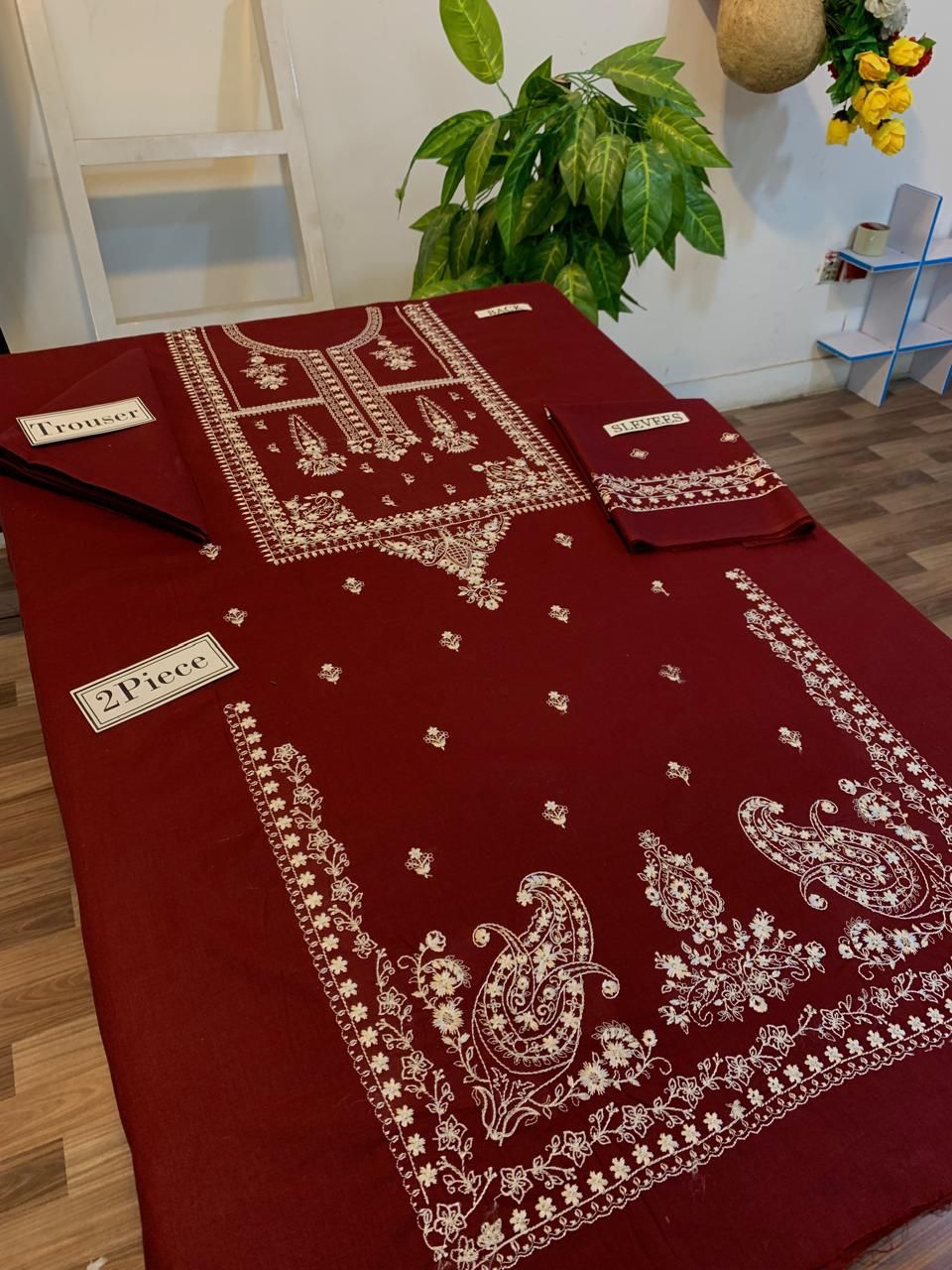 Embroidered 2Pc Dhanak Unstitched Winter Dress With EMB Patches -RC203