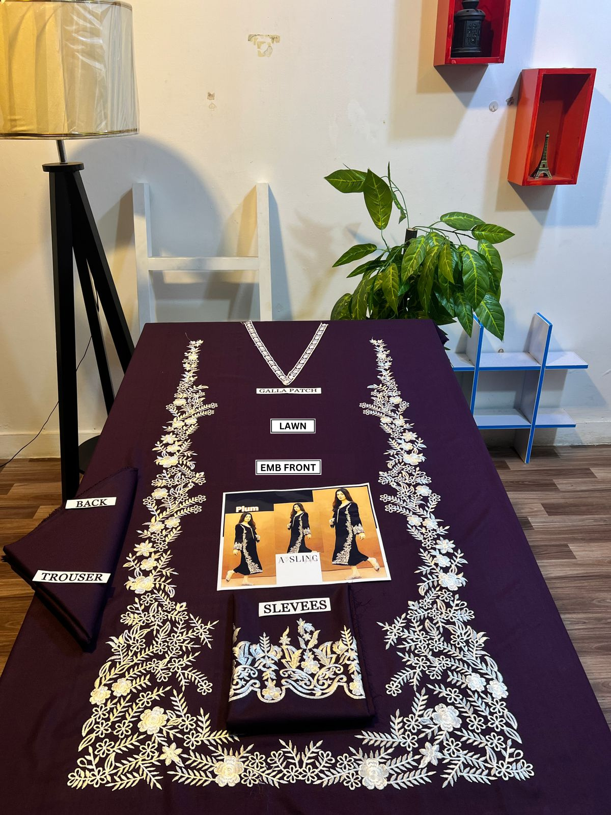 Embroidered 2Pc Dhanak Unstitched Winter Dress With EMB Patches - W70