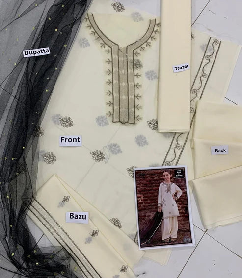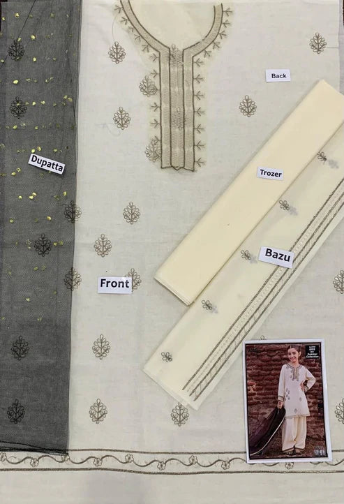 Embroidered Lawn Shirt 2.25 Yards With Embroidered Patches