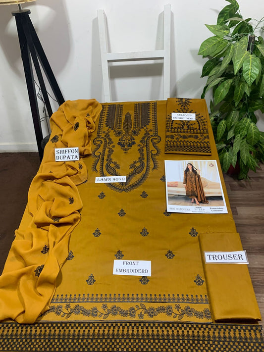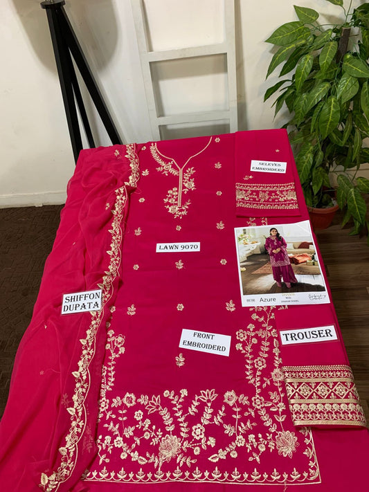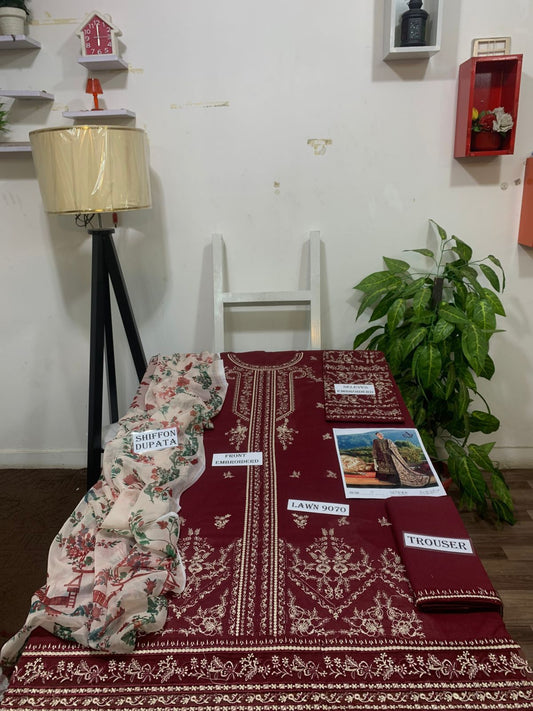 Emb 3PC Lawn Summer Dress With Chiffon EMB Dupatta -WA105