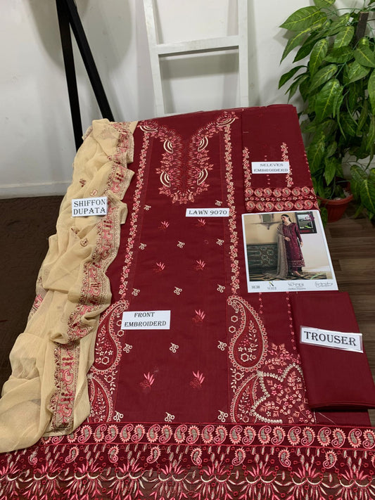 Emb 3PC Lawn Summer Dress With Chiffon EMB Dupatta -DE507
