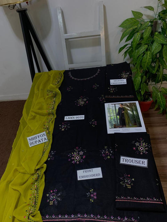 Emb 3PC Lawn Summer Dress With Chiffon EMB Dupatta -AL824