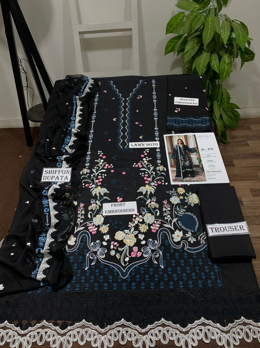 Emb 3PC Lawn Summer Dress With Chiffon EMB Dupatta -AL817