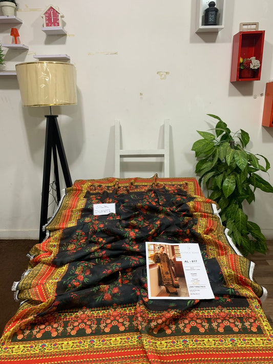 Emb 3PC Lawn Summer Dress With SILK PRINTED Dupatta -AL809