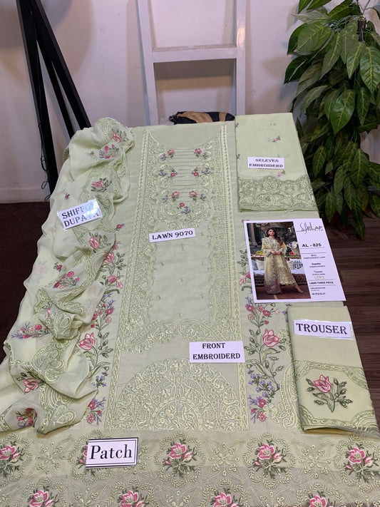 Almaaz Suiting Emb 3PC Lawn Summer Dress With Chiffon EMB Dupatta -AL825